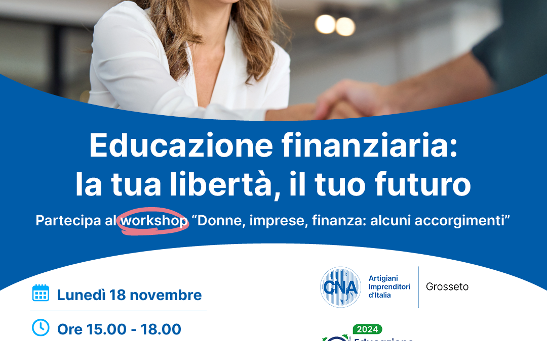 Gestire al meglio il proprio denaro è molto importante per raggiungere i propri obiettivi. L’educazione finanziaria, infatti, è fondamentale per fare scelte consapevoli e utili per il proprio futuro e, per questo, CNA Grosseto e il Comitato Impresa Donna di CNA Grosseto hanno organizzato workshop ammesso e inserito nell’edizione 2024 del “Mese dell’educazione finanziaria” nell’ambito del programma Edufin.